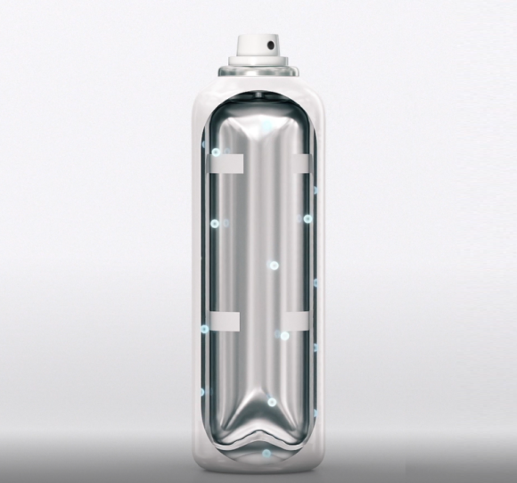 With classic spray dispensing systems, there is no spatial separation inside the can between the product and the propellant. With bag-on-valve aerosol technology, however, the active ingredient and the propellant are separated from each other: The active ingredient is in a sealed bag and the compressed propellant is between the bag and the inside wall of the can.