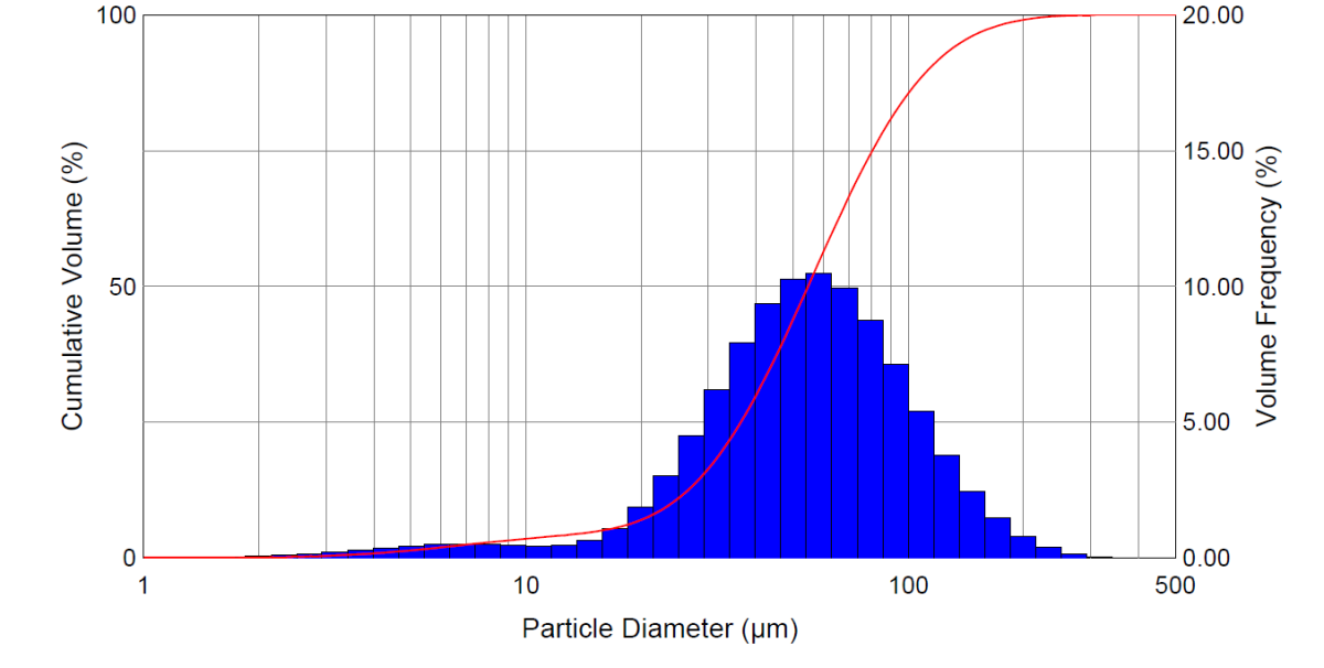 Im Vergleich zu den herkömmlichen Produkten die Messung der Partikelverteilung des TUNAP Imprägnierschaums (in Abbildung 2), welche keine relevanten Messwerte unterhalb der kritischen Marke von 10 μm aufweist.