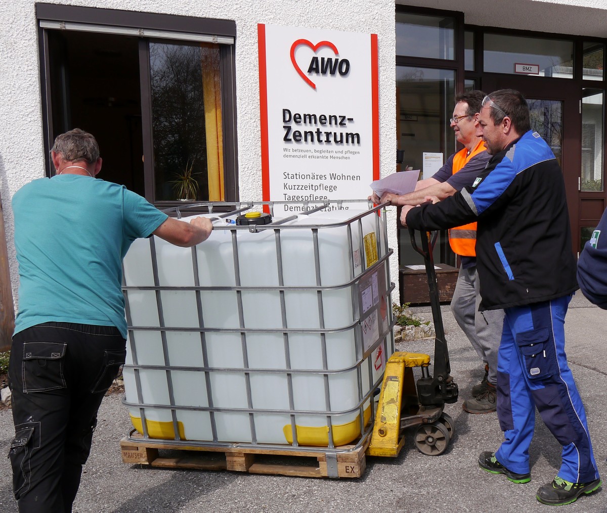 Spende von Desinfektionsmittel an das 'AWO Demenz-Zentrum Wolfratshausen'.