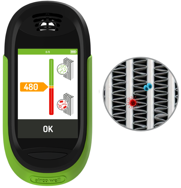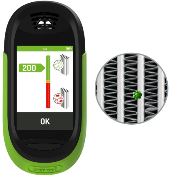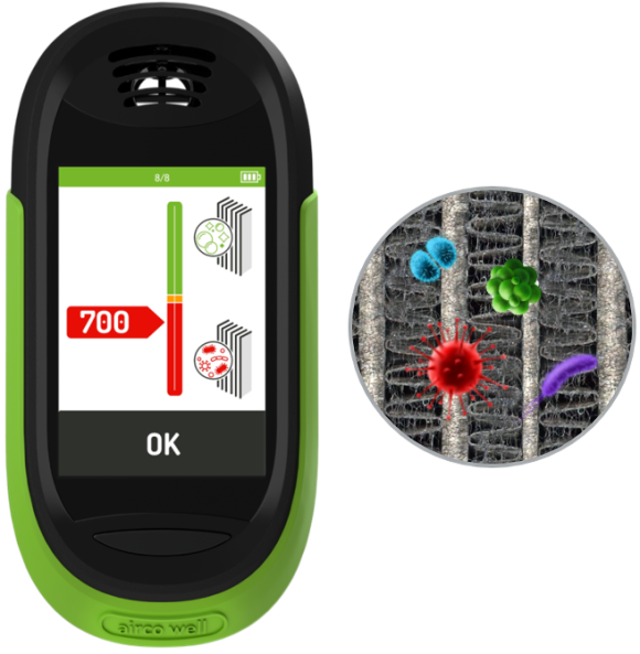 Die speziell entwickelte 3-Schicht Sensortechnologie des airco well® Sensors ermöglicht eine exakte Messung der Belastung der Klimaanlagenluft in Fahrzeugen - einfach, schnell und genau: Die Messdauer beträgt nicht länger als drei Minuten und kann im Rahmen einer Jahresinspektion durchgeführt werden.