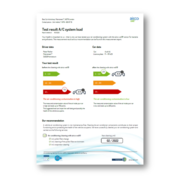 - The second reading is the measurement result after the air conditioning system service with airco well®.